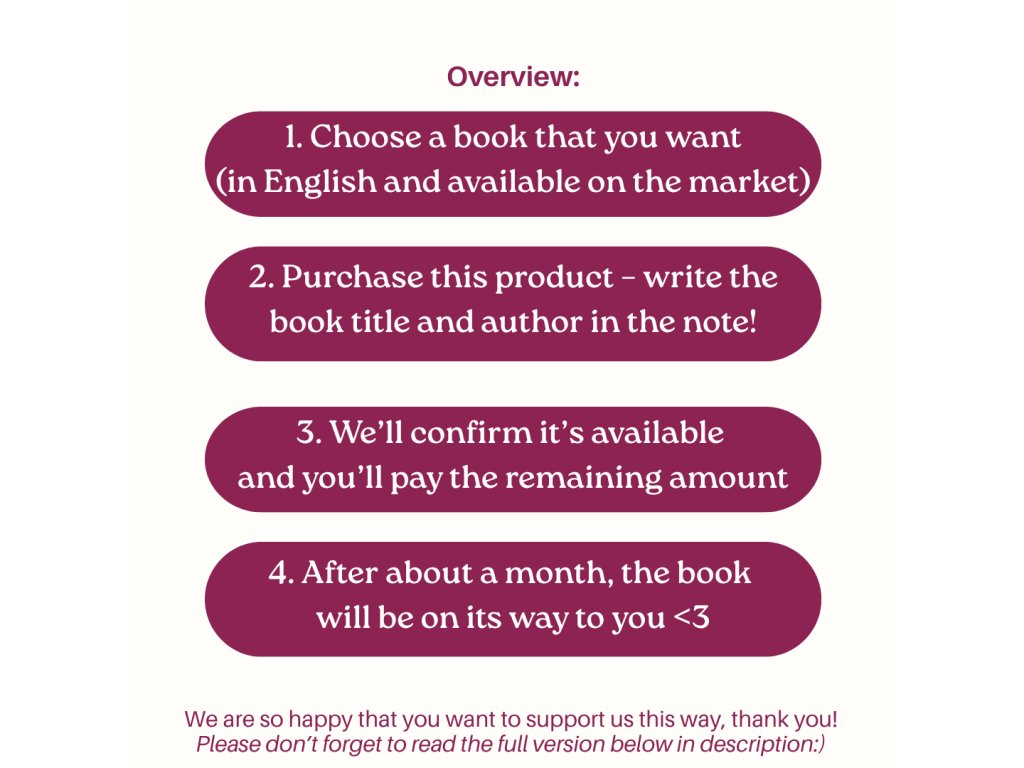 Tvoje vybraná kniha musí splňovat dvě podmínky:- 📖 Musí být v angličtině – máme přístup jen k dodavateli anglických knih, takže české bohužel touto cestou objednat nelze.